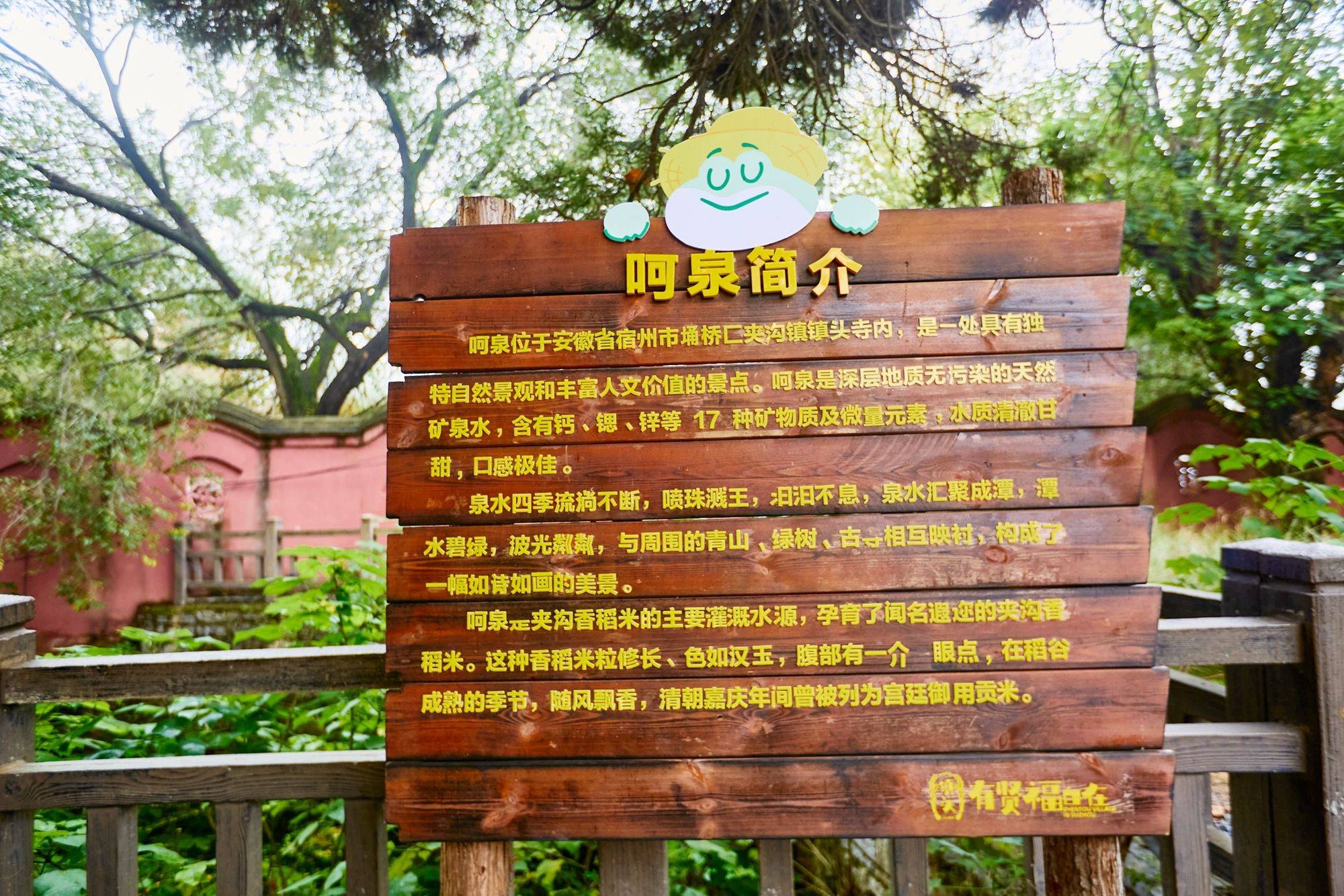 大雄宝殿经过后世维修已了些半现代的外观,走进殿内却是一片古朴,门口两侧“龙顶山下悟佛理,呵泉水畔修禅心”的对联也尽显古意。对联中提到的呵泉是当地名泉,含有十余种矿物质,清澈甘甜,由这泉水灌溉的夹沟香稻米是明清贡米,熟季时“一家煮饭十家香”。