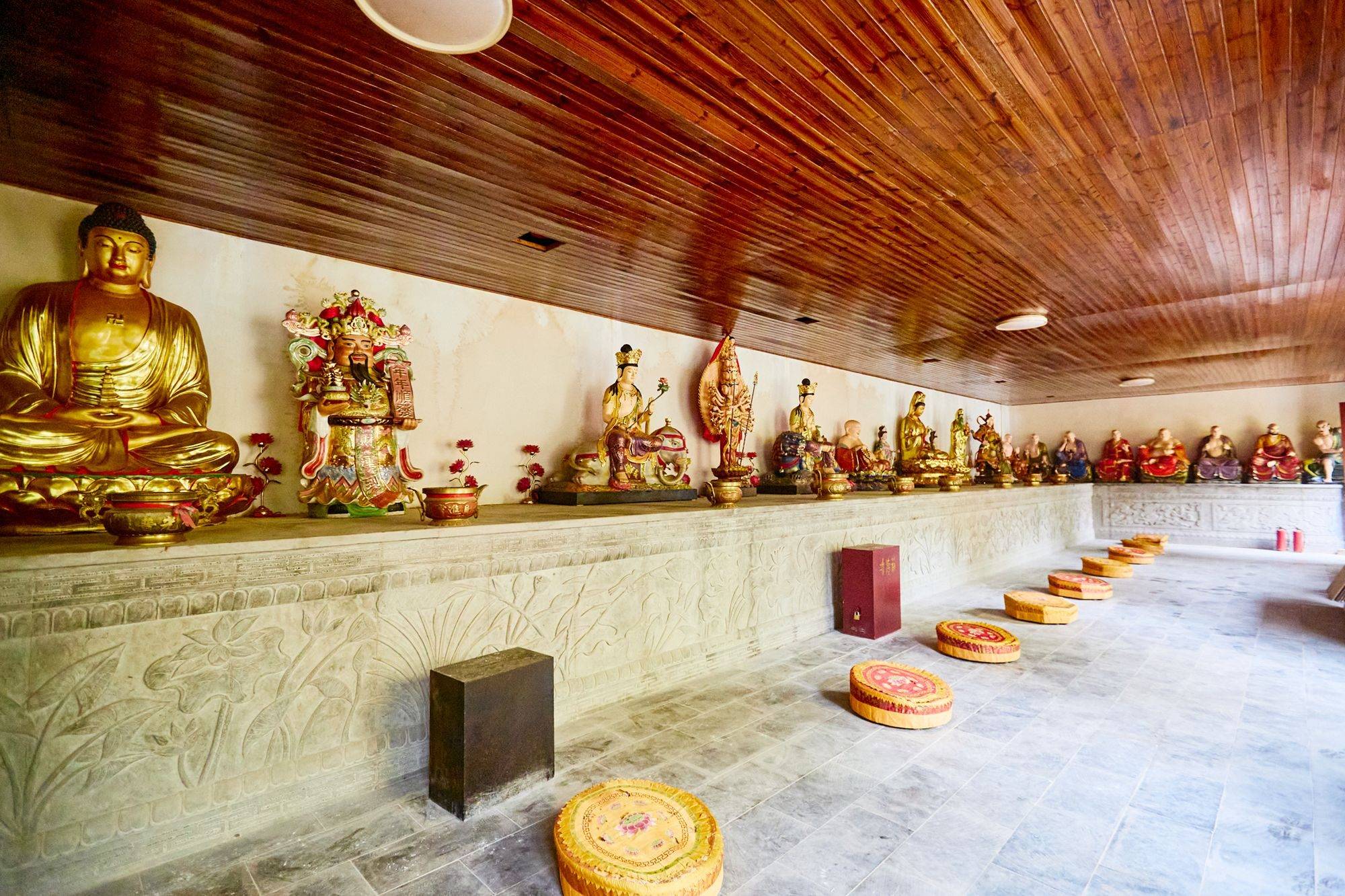 殿堂中雕像一字排开,佛教的释迦牟尼、道教的财神共聚一堂,来者都是神,对许多人来说,礼敬哪位神仙菩萨并不重要,重要的是心中一份念想。