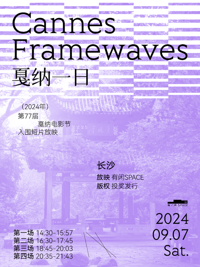 9月7日(星期六),2024年戛纳一日长沙场放映在有闲SPACE圆满结束,15+新锐青年导演短片作品以短片放映、海报展的形式与各位观众见面,让观众感受青年影像的自由生长。本次放映共排片15部、4场,首映全部售罄,为满足广大影迷的观影需求,本次戛纳一日短片主办方计划将于9月15日进行加场放映。