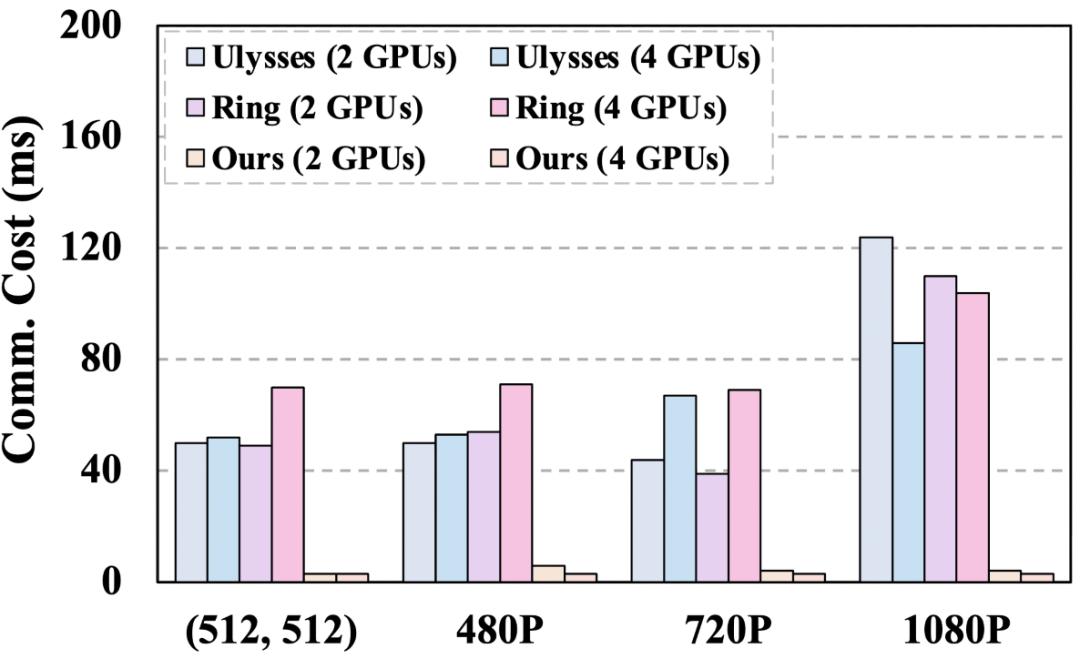 进一步地,序列并行(Sequence Parallelism)方法(如 Deepspeed-Ulysses 和 Ring-Attention)在推理中需要在每个 DiT Block 执行一次跨设备通信,从而引入了显著的通信开销。通信过程本质上也属于数据搬运操作,与内存访问共同加剧了系统数据传输开销。