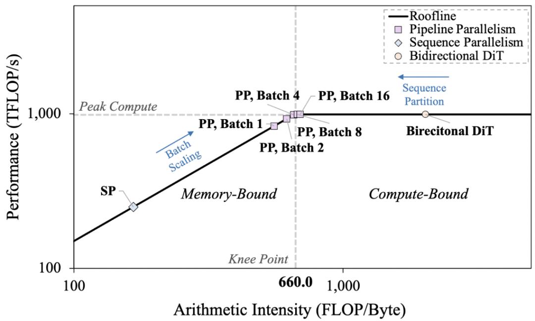 先前双向注意力 DiT 主要受计算能力限制,而在自回归视频生成中,尤其是低延迟的单帧 latent 参数下,因为需要加载长序列的 KV Cache,却只对当前输入进行计算,使得内存访问开销超过计算开销,系统性能由内存带宽而非算力主导。