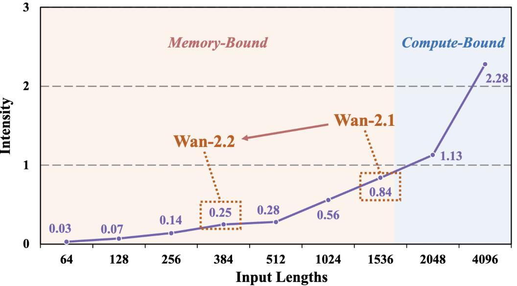 进一步地,这一工作顺应了硬件与算法发展的长期趋势。由于 GPU 计算能力增长速度明显超过显存带宽,自回归推理正处于内存访问约束区域;与此同时,视频生成算法不断采用更高压缩率与更结构化的表示方式,也进一步加剧了推理阶段的内存访问压力。
