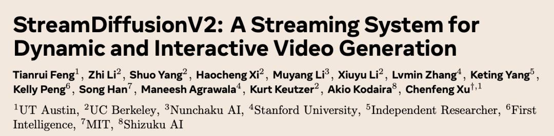 近日,一项已经被计算机系统顶级会议 MLSys 2026 接收的工作 StreamDiffusionV2,对这一问题进行了详细讨论并给出了解决方案。来自德克萨斯大学奥斯汀分校等机构的研究者组成的团队提出了一种无需训练、面向交互式直播的流式视频生成系统。该系统可在多种类型 GPU 上稳定运行,同时实现低延迟与高质量生成。