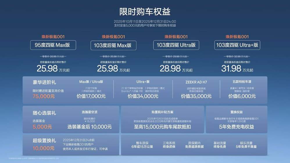作为新能源猎装车市场的开创者,极氪001自2021年问世便打破品类小众边界,2024年更创下全球每卖出10台猎装车就有7台是极氪的纪录。焕新极氪001传承经典猎装造型,在外观、内饰、性能等维度全面升级,以“更豪华、更科技、更性能”树立豪华猎装新标杆,上市前现款车型便已售罄,市场热度居高不下。