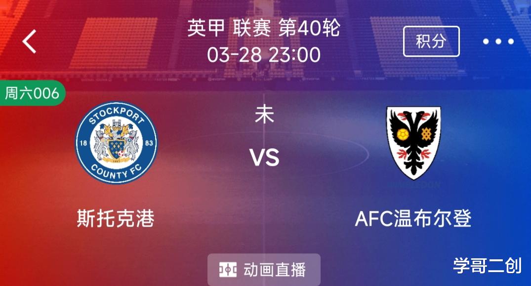 周六 006 英甲:斯托克港VSAFC温布尔登