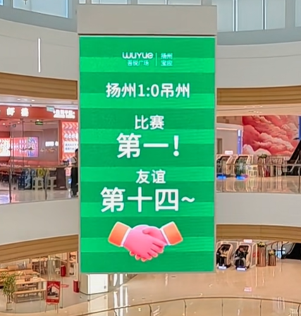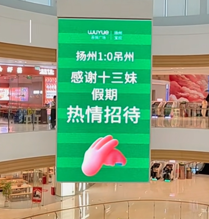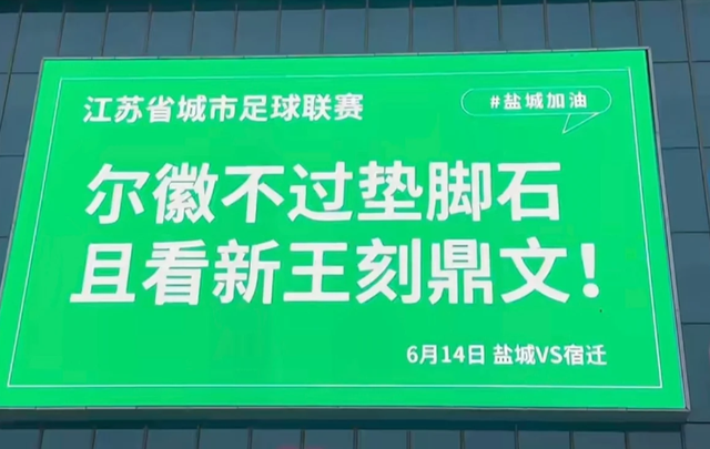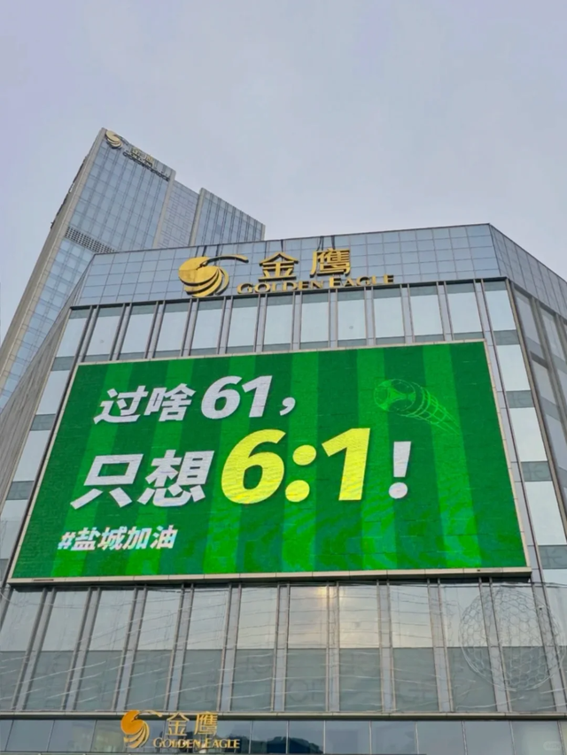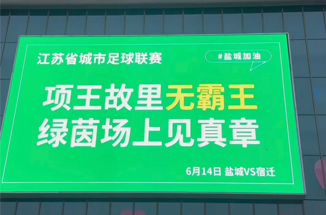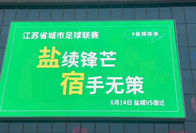 盐城VS淮安的时候正巧赶上六一儿童节的假期,但两城人民谁都无心假期,双方一心争夺“苏北王”的宝座,盐城更是直接在商场大屏幕上拉出口号“过啥61,只想6:1”。