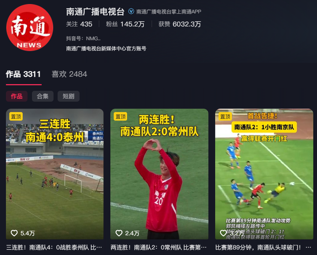现在南通广播电视台官方账号置顶的三个视频,全都用大字标出来获胜比分,想当大哥的野心昭彰,就差高喊一声“天命在我”。