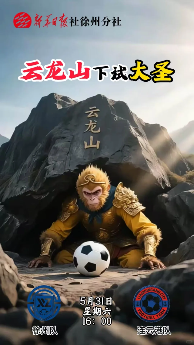 连云港分社发美猴王用金箍棒猛击徐州云龙山的海报,徐州分社就发云龙山把大圣压在山底下。