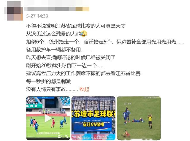 救护车都不够用,替补也全都打光了,才没让比赛打不下去,精彩程度让人幻视少林足球。