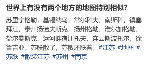 因为太过散装,江苏甚至被调侃为真正的“苏联”,说苏联解体的的“苏”肯定是江苏的“苏”。