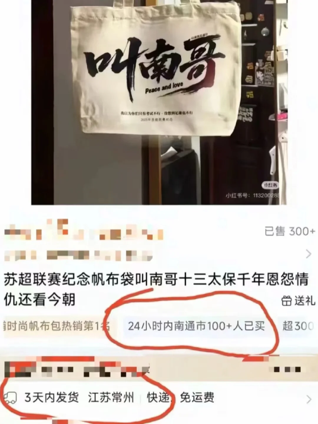 但常州人的商业头脑也没闲着,被人扒出来原来上面提到的那个“叫南哥”帆布袋发货地不是南通,而是常州......甚至销量多的店铺4天卖了2000单。