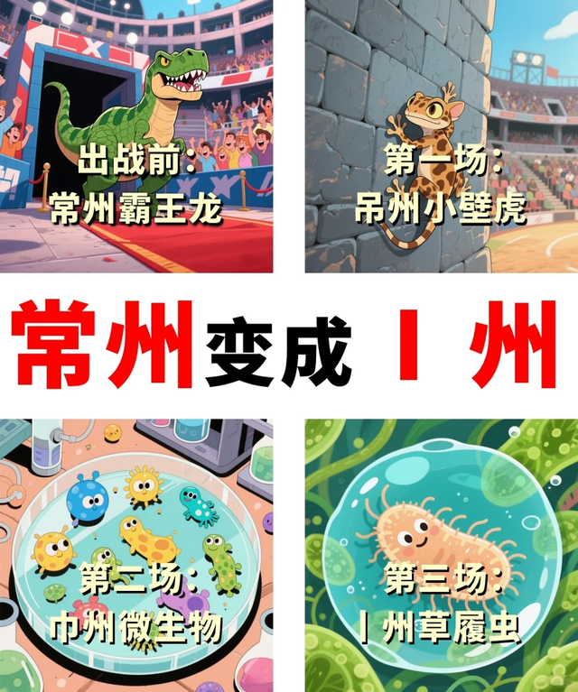 本来常州因为打造了国家5A级景点“中华恐龙园”,而被尊称为常州霸王龙,结果前两场比赛全都没进球,网友说这是被别人剃光头了,第一轮结束吊州小壁虎,第二轮结束巾州微生物……
