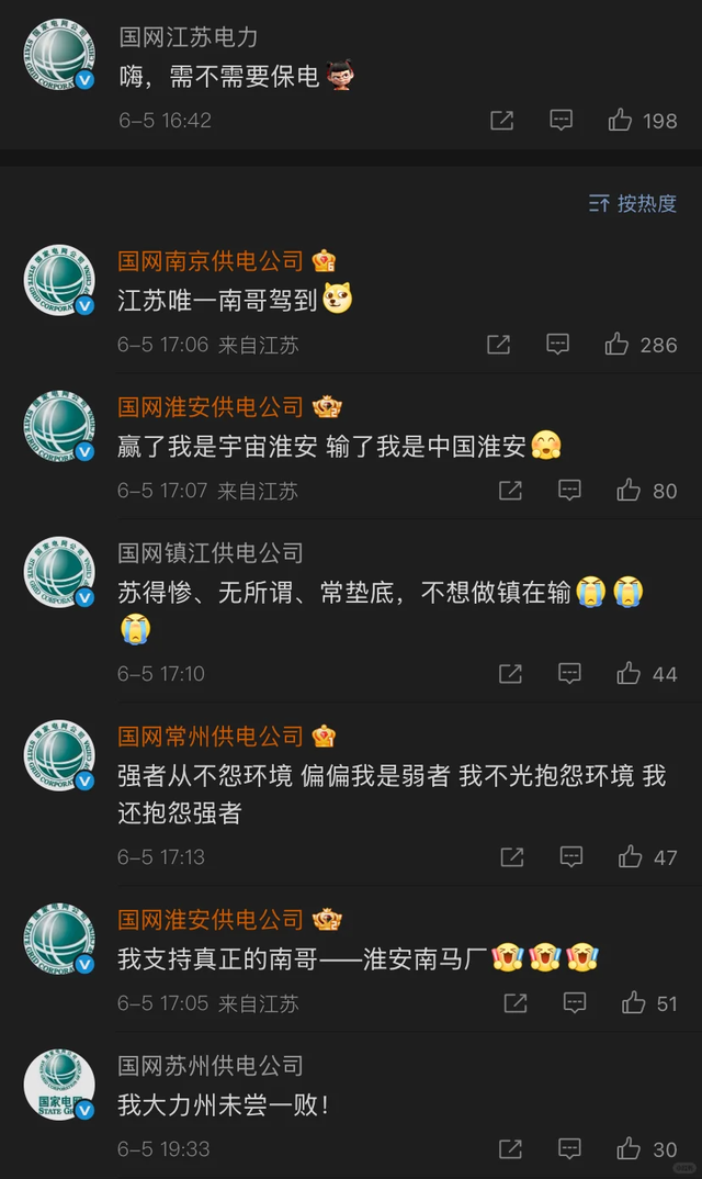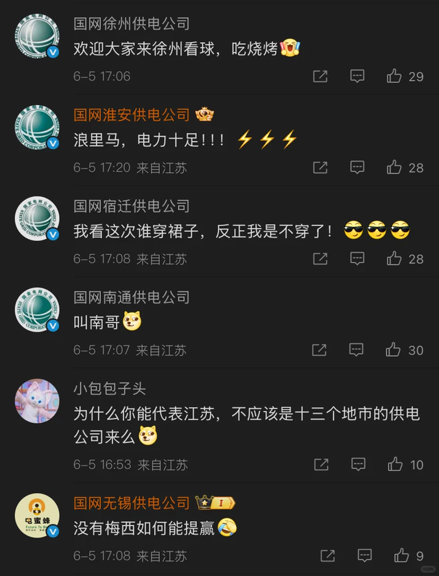 另外江苏各家电网也闻讯赶来,争相为苏超供电,梗密度爆棚。