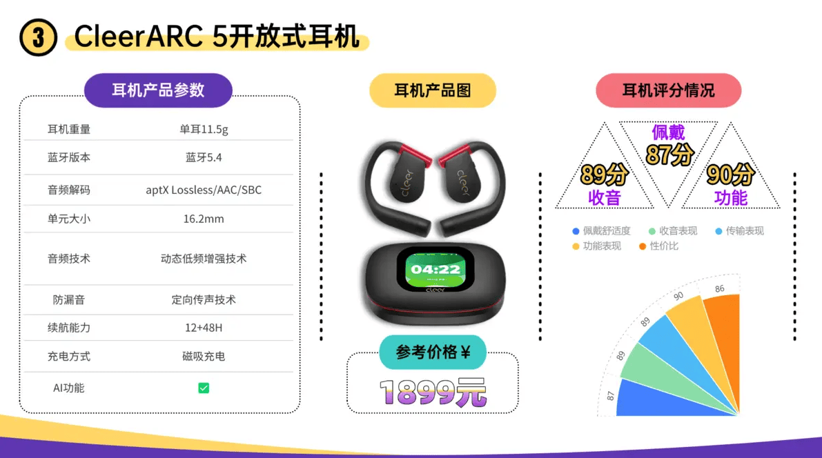 机型亮点:“音质巅峰”体验著称,在高端开放式耳机口碑销量排名第一!