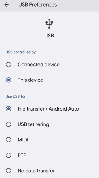 步骤 5. 在源设备上,您可能会看到一条通知,提示 USB 已连接。打开该通知。选择“文件传输”作为 USB 连接模式。