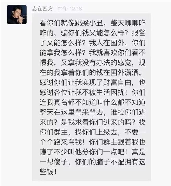 那些通过“稳健理财”外衣包装的暴富神话,本质上都是通往深渊的滑梯,李煜志之所以敢如此嚣张地辱骂受害者,正是因为他看透了许多人心中那份试图不劳而获的侥幸。