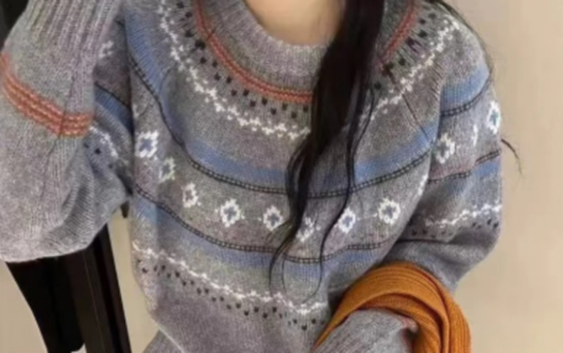 想让毛衣穿搭更有记忆点,撞色是进阶技巧。莫兰迪同色系渐变最安全,浅灰毛衣配雾霾蓝半裙,再搭双米白短靴,像把秋天的天空穿在身上;圣诞红绿撞色要大胆,酒红毛衣配墨绿半裙,外搭件米白大衣,既应了节日氛围,又不会太扎眼;棋盘格元素最有复古味,黑白棋盘格毛衣配卡其色直筒裤,脚踩马丁靴,随便往街角一站就是杂志封面。