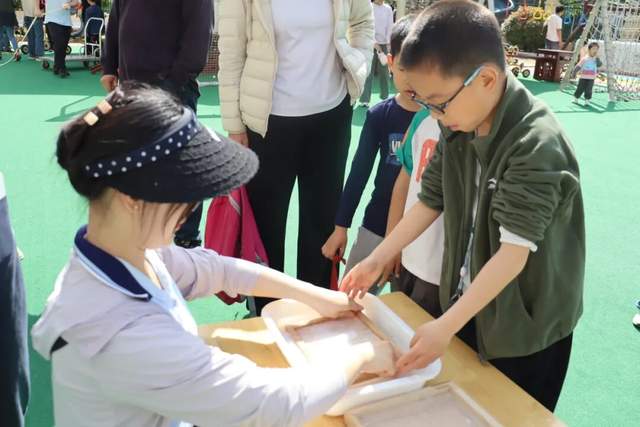 在造纸术的探索里,孩子们亲手感受纸张的诞生。