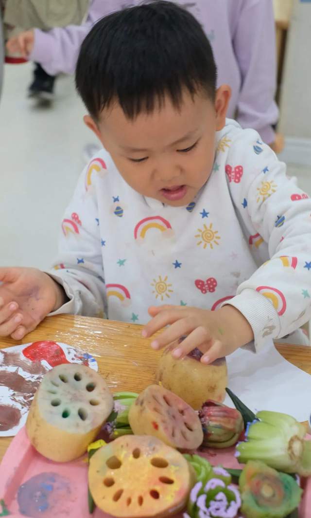 在蔬菜拓印游戏中感受劳作与创作之乐,触摸自然、动手实践,体会勤劳的珍贵,让热爱与付出相伴成长。