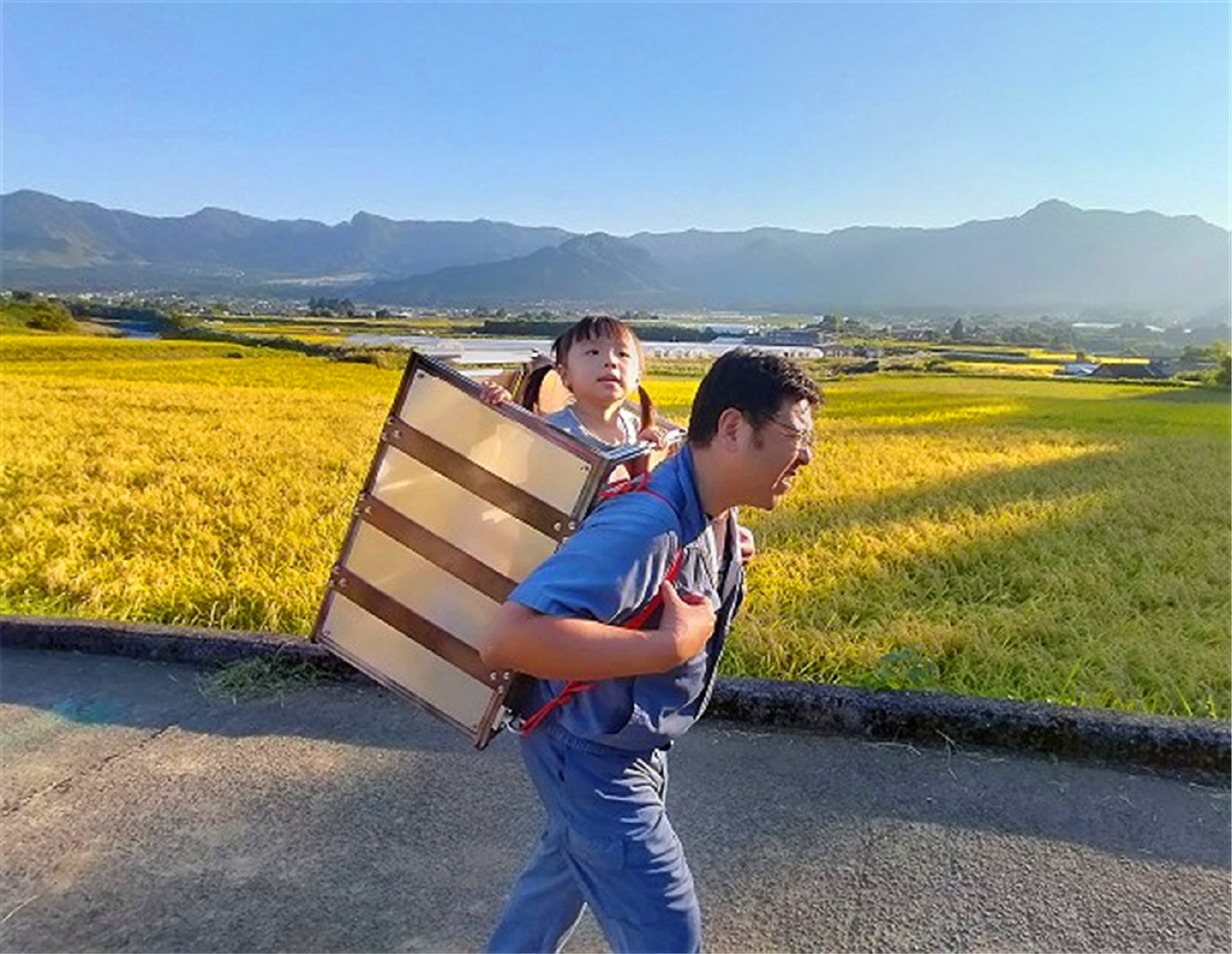 相同的材料并不好找,因此楼主的箱子并没有和动漫里的一模一样,但是对于小孩子来说足够了,因为人家想要的就是在箱子里被背的感觉。虽然看上去有点羞耻,但是父亲为了心爱的女儿,还是把她背了出去。只是动漫跟现实生活还是有落差,箱子的确可以还原,“asokara”却没有炭治郎的体力。他感慨:女儿有16公斤(还没算箱子的本体重量),有些累得吃不消,腰酸背痛!