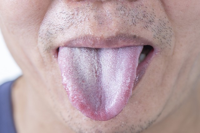 看舌头:舌苔黄腻,舌两边鼓胀。