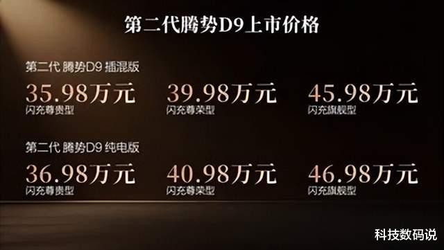 4月27日,科技豪华旗舰MPV——第二代腾势D9震撼上市,推出插混版3款、纯电版3款,共计6款车型,官方指导价35.98万元—46.98万元。为了满足用户对于豪华出行的极致追求,第二代腾势D9搭载比亚迪第二代刀片电池及闪充技术、全球首创「合元」超集成动力平台、天神之眼 5.0辅助驾驶系统、双阀云辇-C等前瞻科技,带来九大新迭代,在美学、空间、舒适、科技、安全等全面进阶,精准契合当下用户豪华出行的新追求,重塑豪华MPV价值新标杆。