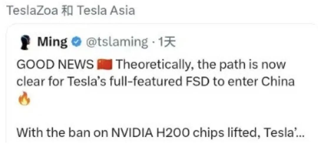 “全球最好”的智驾既然英伟达 H200 的禁令已经解除、明年满血 FSD 入华理论上的障碍都已经扫清,全球最好的智能驾驶 VS 智能驾驶全球最大的市场,好戏该开场了。