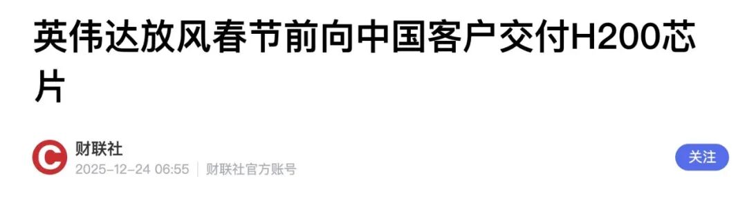 美方终于解除了英伟达 H200 的禁令,明年就能在中国卖了。