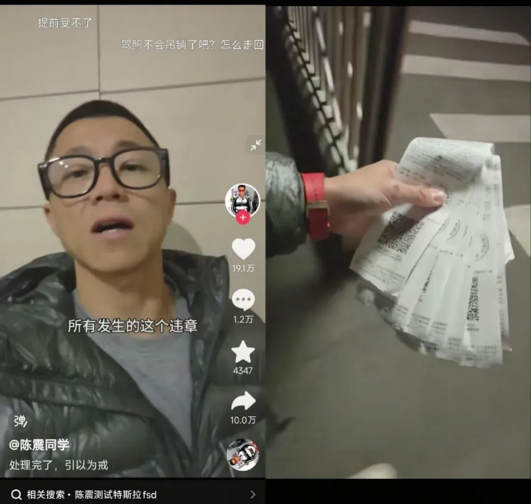 某知名车评人就曾晒出过,自家工作室因为测试 FSD 产生的厚厚一叠罚单;在当时的微博热搜,还有“首批测试特斯拉FSD的车主已经被扣完了12分”这种充满戏谑性的热搜话题。