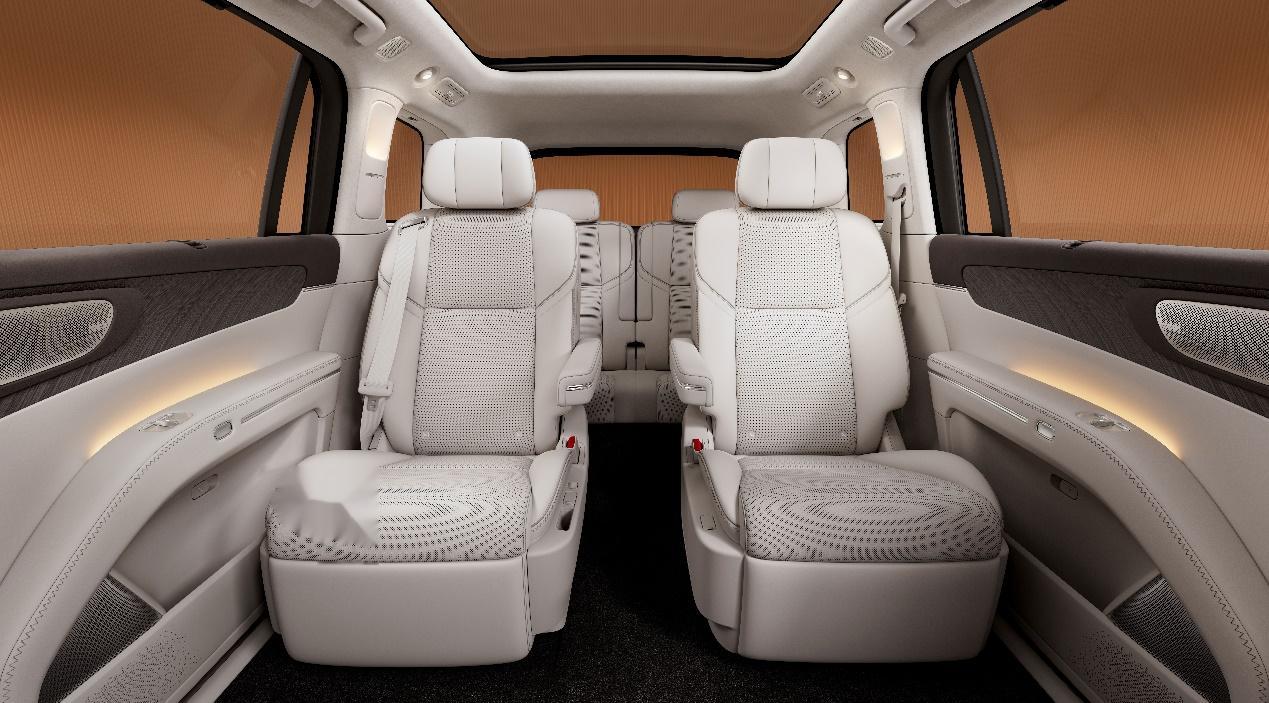 座椅配置堪称“移动头等舱”,采用百万级豪车同源的半苯胺头层真皮材质,高定V形绗缝、大师级辊边与奢侈品手包为灵感的珍珠打孔工艺,兼顾视觉美感与体感舒适。座椅拥有12层奢享级结构设计,配备加热、电动调节功能,前两排更搭载吸风式通风与10点式SPA级气动按摩。二排120°真零重力座椅支持坐垫15°抬升与4向超大行程腿托,搭配ABTS一体式安全带,带来全身承托的悬浮休憩体验。第三排支持131°无级电动调节并首搭双扶手,配合EZE便捷进出系统,让每一排都能享受平等的豪华待遇。