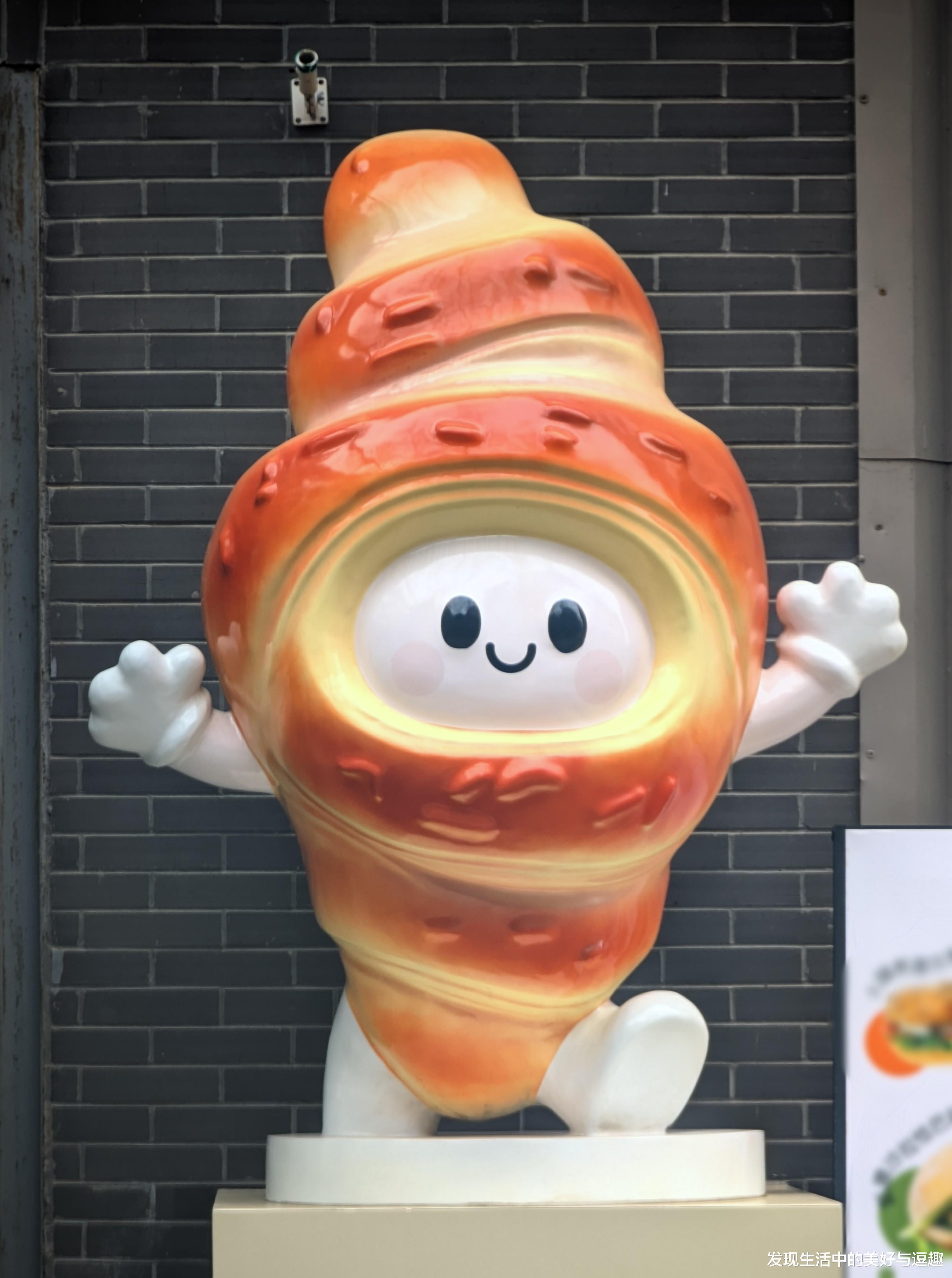 某烘焙店门口可颂型的面包吉祥物,话说我以前还挺喜欢买牛角包当早点的。