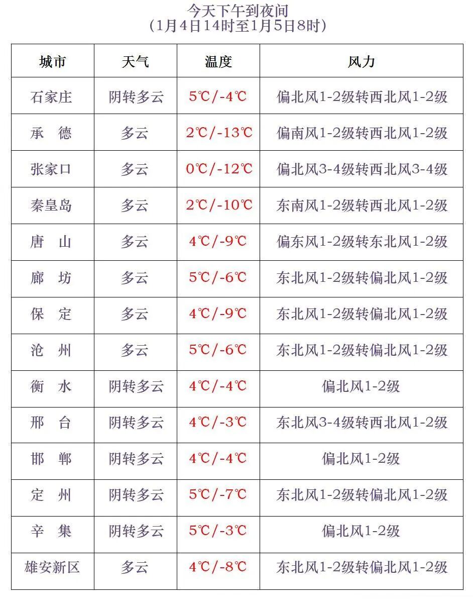 明天夜间到6日,保定、廊坊以南地区阴转晴,其中邯郸有小雪或零星小雪。其他地区晴间多云。