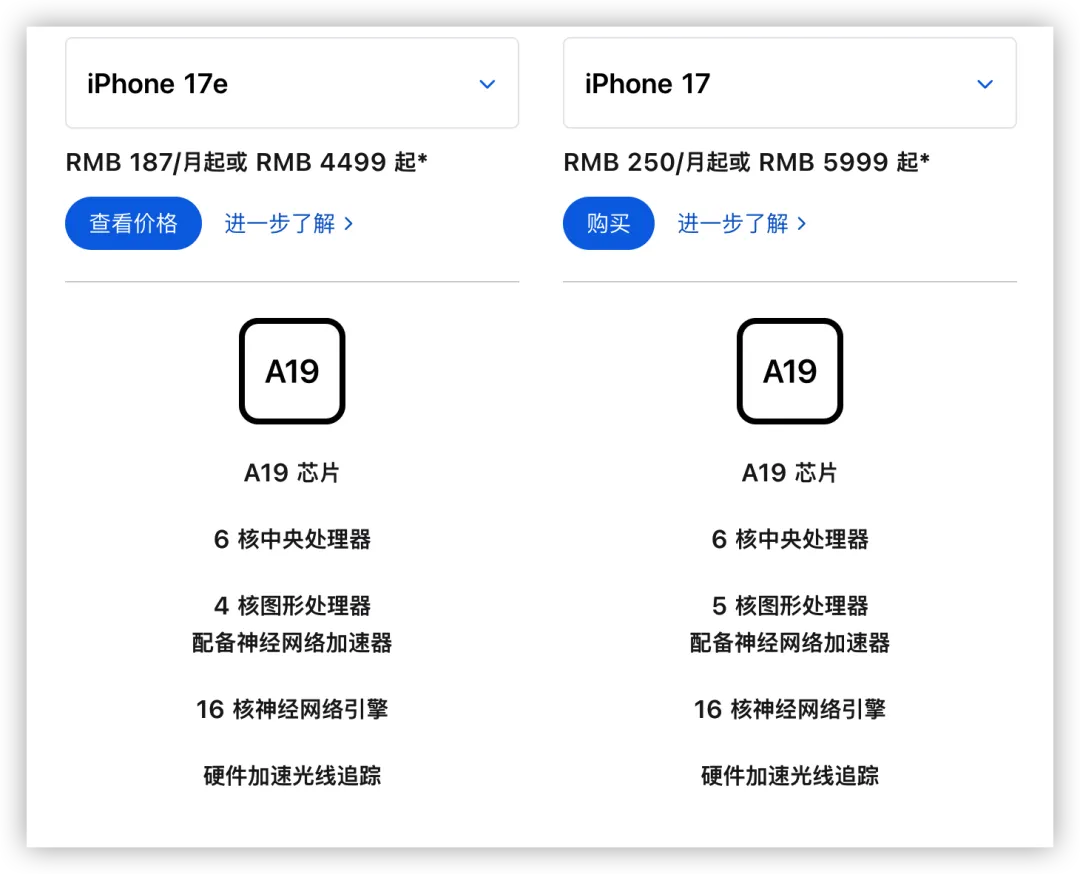 虽然苹果表示,iPhone 17e 搭载了 17 系列同代的 A19。