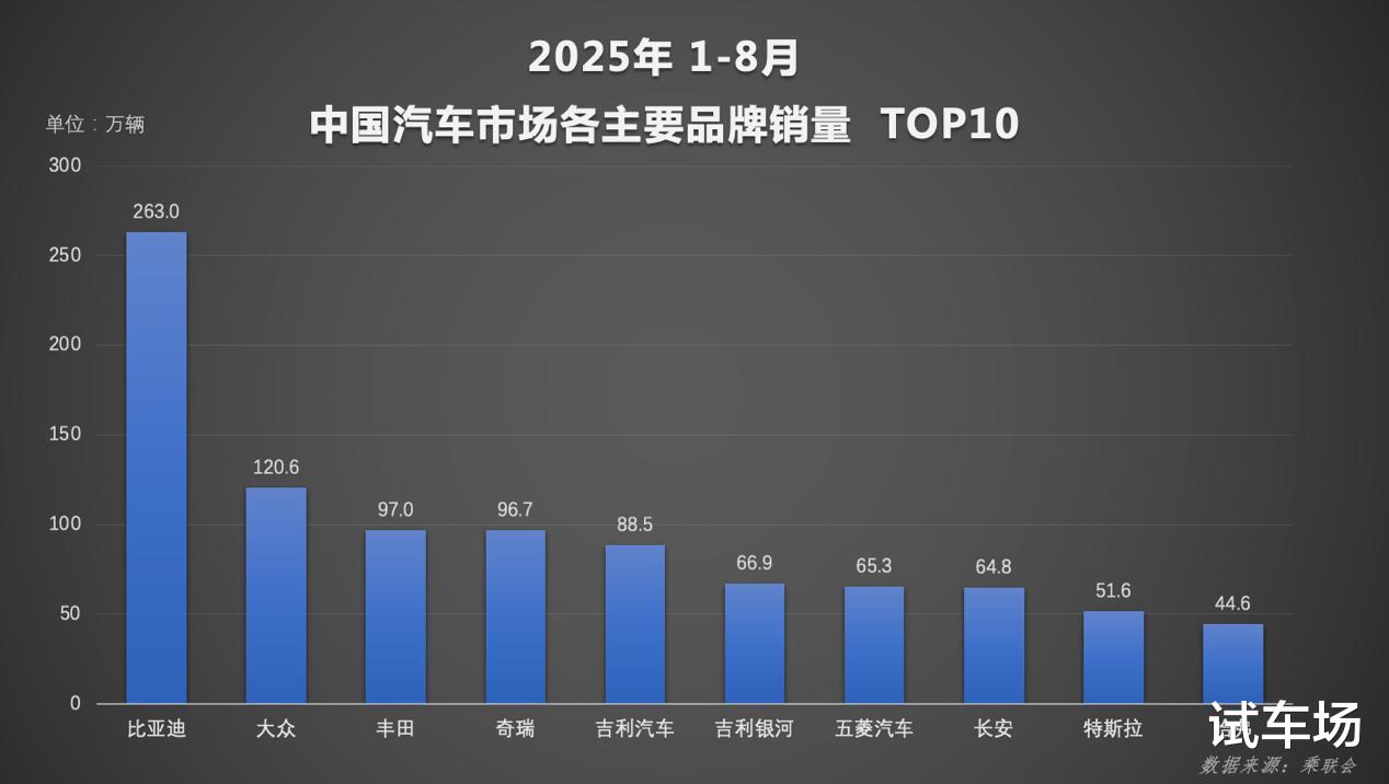 2025年1–8月,中国汽车市场延续增长态势,汽车产销量双双超过2000万辆。乘用车新能源渗透率升至55.3%,自主品牌份额达到64%。在“金九银十”即将到来之前,行业头部格局愈发清晰,在新能源与自主品牌叠加的浪潮中,比亚迪稳居销量榜首,持续展现强大的市场号召力与增长韧性。