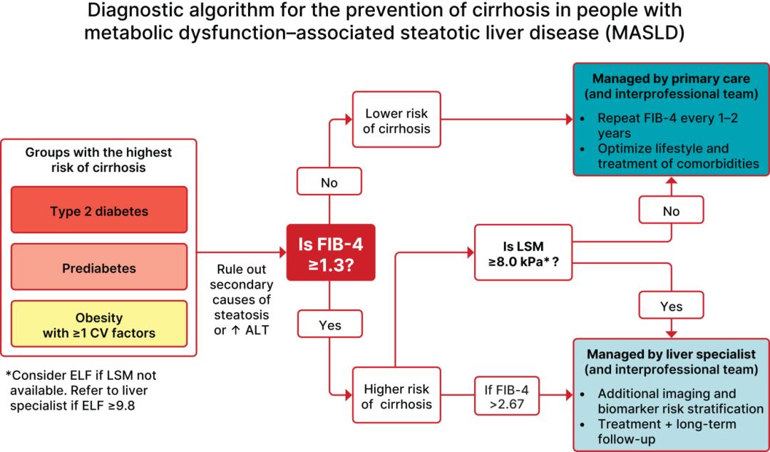 修改图4.2,明确纤维化-4(FIB-4)指数>2.67 的患者,其诊疗流程需由肝病专科医师主导。