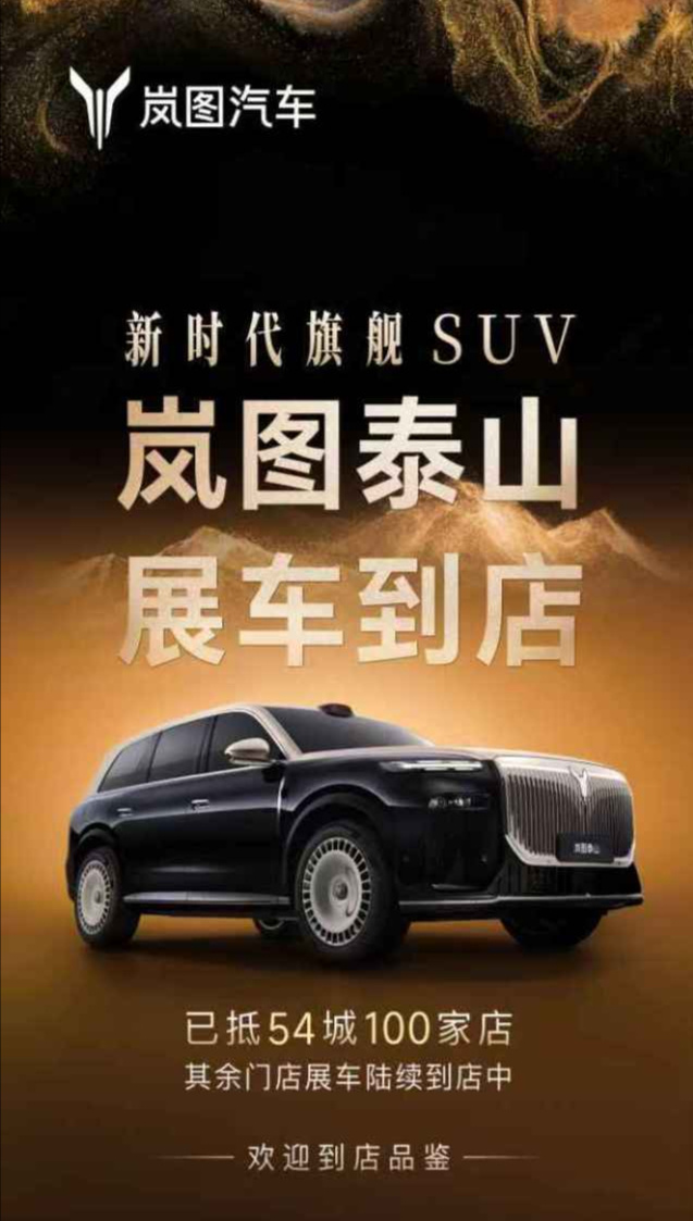 今日,岚图泰山首批量产车已正式抵达全国100家岚图空间与体验店,覆盖北京、上海、深圳、武汉、成都、杭州等54座城市。岚图泰山正式进入全国用户品鉴阶段。