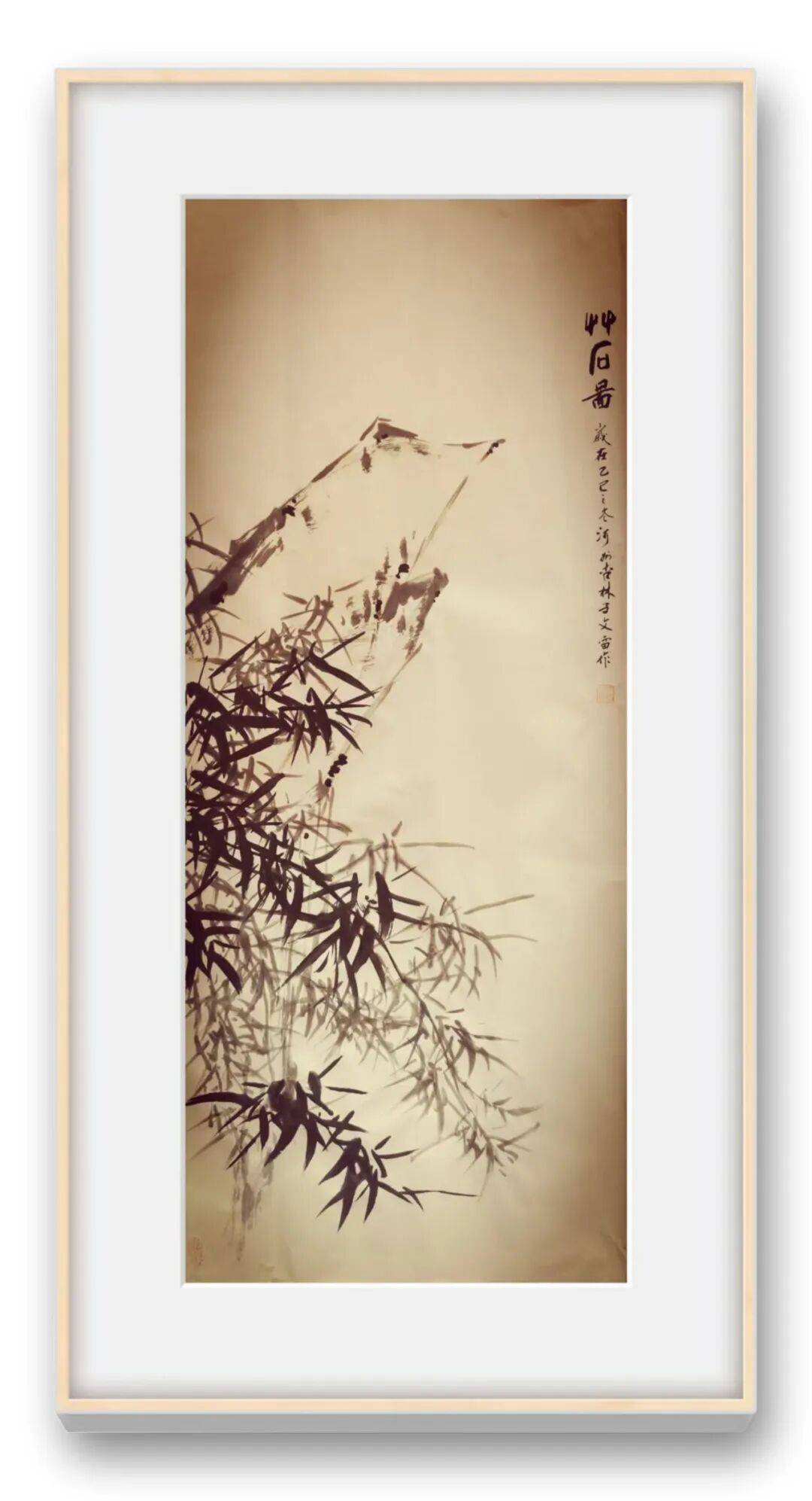 画兰则更见先生的笔墨才情。兰花叶片修长飘逸,姿态温婉却不失风骨,先生以流畅婉转的线条勾勒兰叶,笔锋游走间,兰叶的舒展、卷曲、交错皆栩栩如生。线条细而不弱,柔而有骨,既展现出兰花的清雅之姿,又暗含不屈的气节。兰花的花朵以淡墨点染,笔法简练却神形兼备,或含苞待放,或欣然绽放,寥寥数笔便将兰花“幽谷出幽兰,秋来花畹畹”的清幽之态展现得淋漓尽致。值得称道的是,先生在兰竹的组合构图上极具匠心,并非简单的元素叠加,而是注重画面的整体意境营造。有时以竹为骨,兰为韵,竹的挺拔与兰的温婉相互映衬;有时以石为衬,兰竹依石而生,石的厚重与兰竹的清雅形成对比,让画面层次更加丰富。留白的运用更是恰到好处,画面中的空白并非虚无,而是与笔墨所及之处相互呼应,营造出“虚实相生”的意境,给观者留下充足的想象空间,让人在留白处感受到兰竹生长的清幽环境,体悟到“疏影横斜水清浅”的诗意。