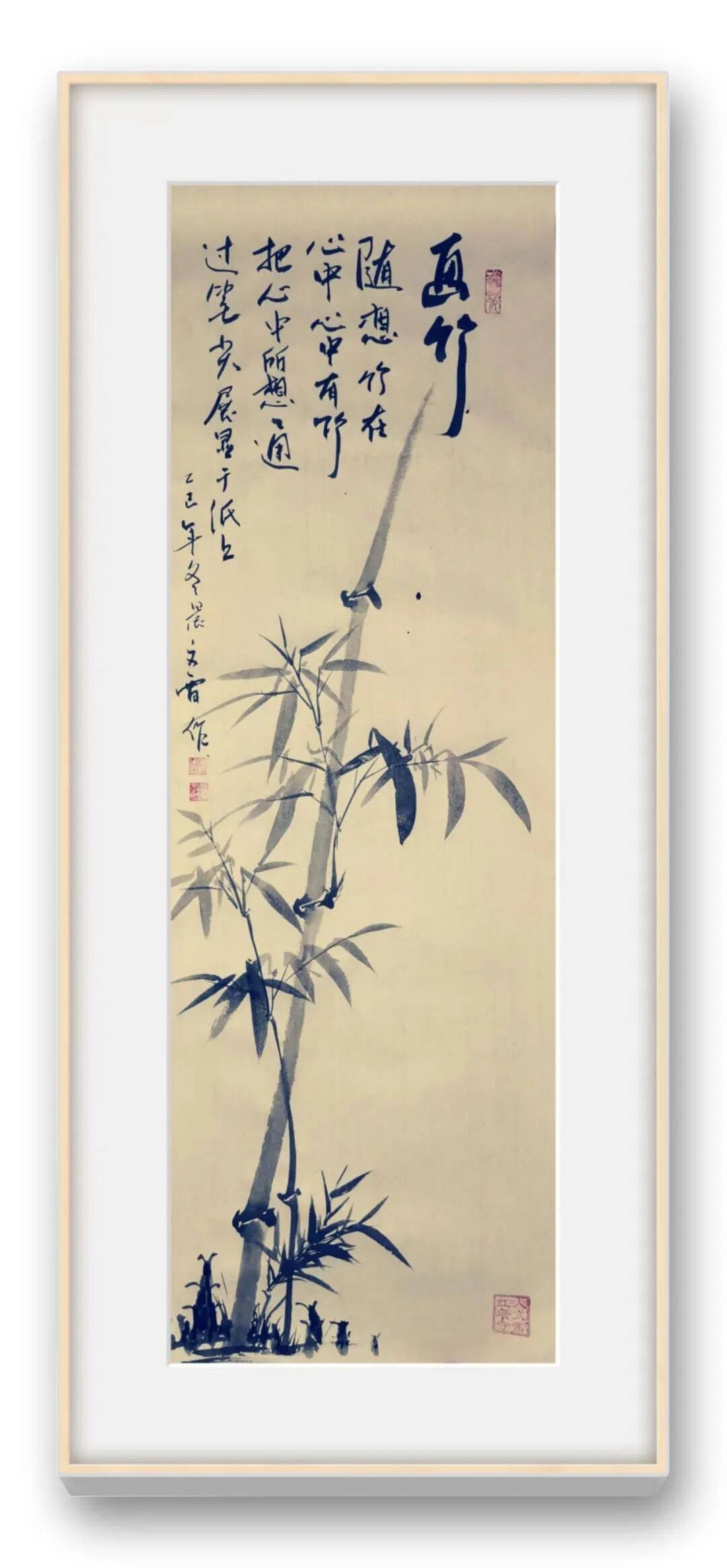 张文雷先生的兰竹画,最引人注目的便是其精湛的笔墨功夫。传统兰竹画讲究“以书入画”,笔墨的筋骨与韵味直接决定作品的格调,先生深谙此道,将书法的笔法融入绘画的线条之中,使每一笔都兼具书写性与表现力。画竹时,先生笔下的竹竿以中锋行笔,线条遒劲挺拔,粗细变化自然,既展现出竹子的坚韧质感,又暗含书法的提按转折之美。初发的新竹纤细却不失劲挺,笔锋轻快灵动;成熟的老竹粗壮沉稳,笔墨厚重扎实,一刚一柔之间,尽显竹子“未出土时先有节,及凌云处尚虚心”的品格。竹叶的描绘更是精妙,先生以侧锋挥毫,笔触灵动洒脱,或聚或散,或浓或淡,疏密排布错落有致。浓墨的竹叶苍劲有力,淡墨的竹叶轻盈飘逸,墨色的层次变化丰富,既还原了竹叶随风摇曳的自然之态,又赋予了画面强烈的节奏感与韵律美,让人在观赏中感受到“叶叶如闻风有声”的生动意境。