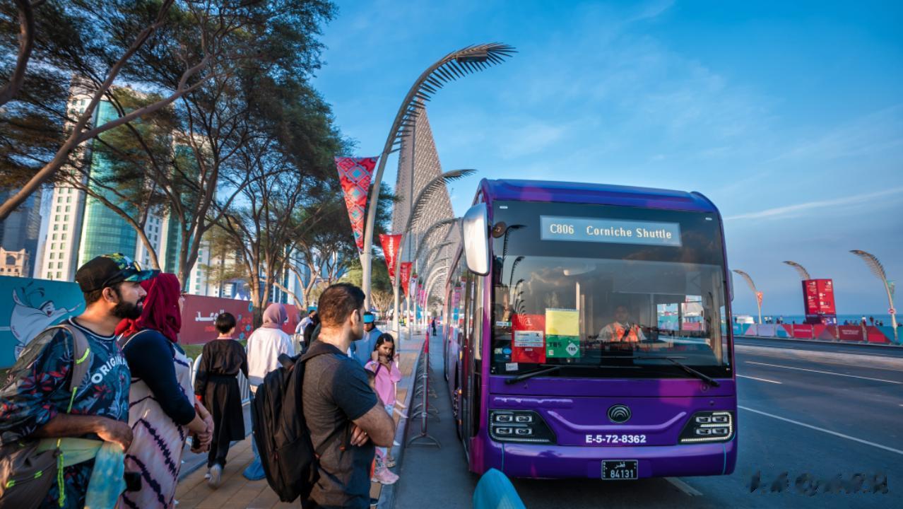 图为卡塔尔国际足球盛会提供接驳服务的宇通客车