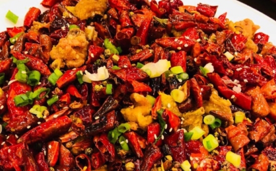 "天呐,这盘菜居然会发光!"芬兰妈妈安娜举着手机,镜头里是川菜馆端上来的辣子鸡——红亮的辣椒堆里,金黄的鸡块泛着油光,在暖黄的灯光下确实像在发光。