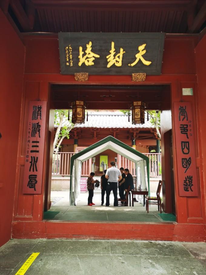 天封塔位于海曙区大沙泥街西端与解放南路交汇处。 始建于唐武则天“天册万岁”至“万岁 登封 ”(695—696)年间,因建塔年号始末“天”“封”而得名。建成后塔高18丈,约51米,共14层,分7明7暗(包括地宫),六角形。