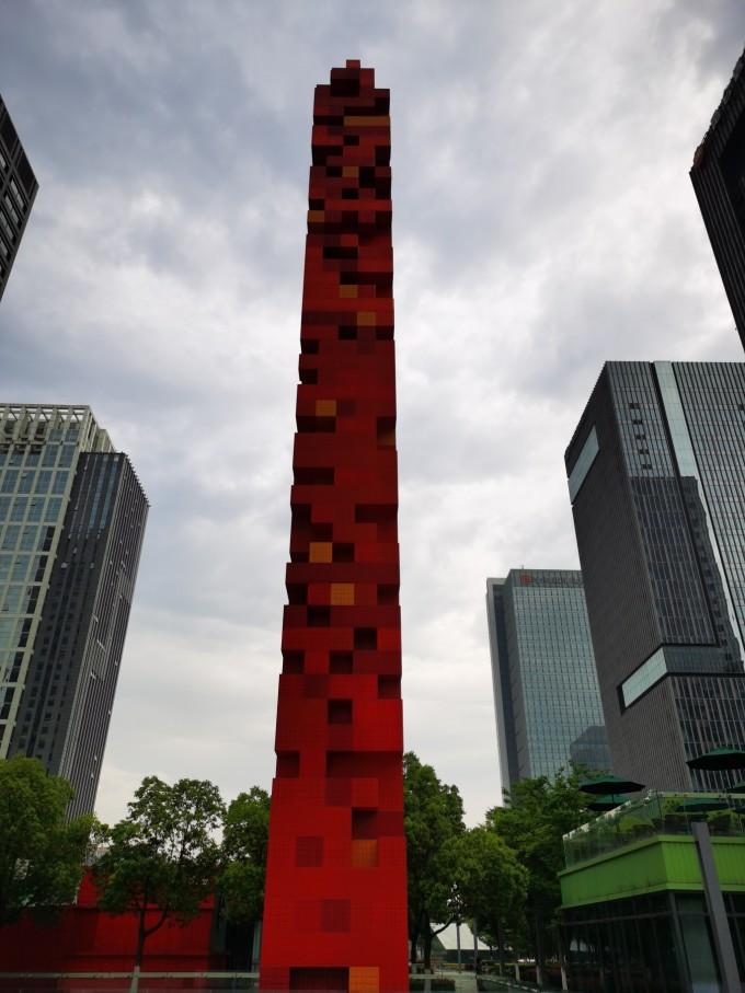 伫立在场地中央的雕塑塔成为了整个项目的标志,无论在场地何处都能看见这一壮观的中央塔,富有动感的集装箱雕塑与场地内的家具和功能性构筑物之间形成呼应,同时也象征着 宁波 东部 新城 的经济发展。