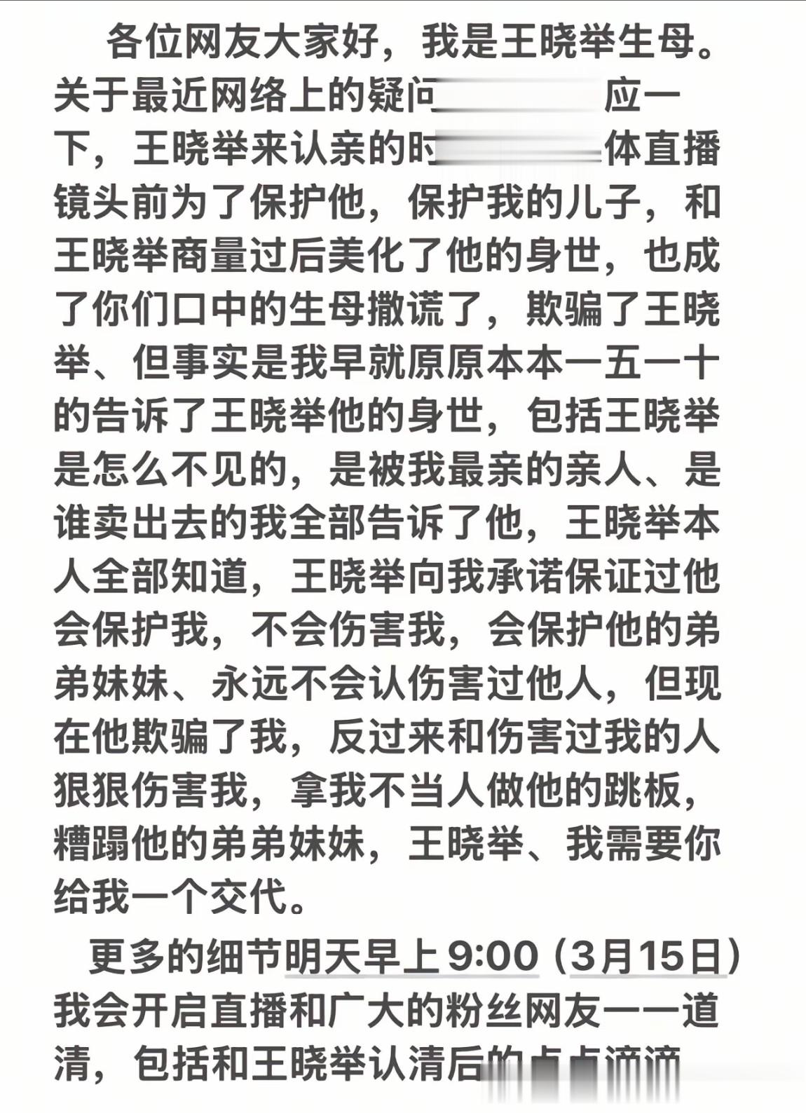 王小举亲妈真的直播了,真的说出了跟之前截然相反的事儿。