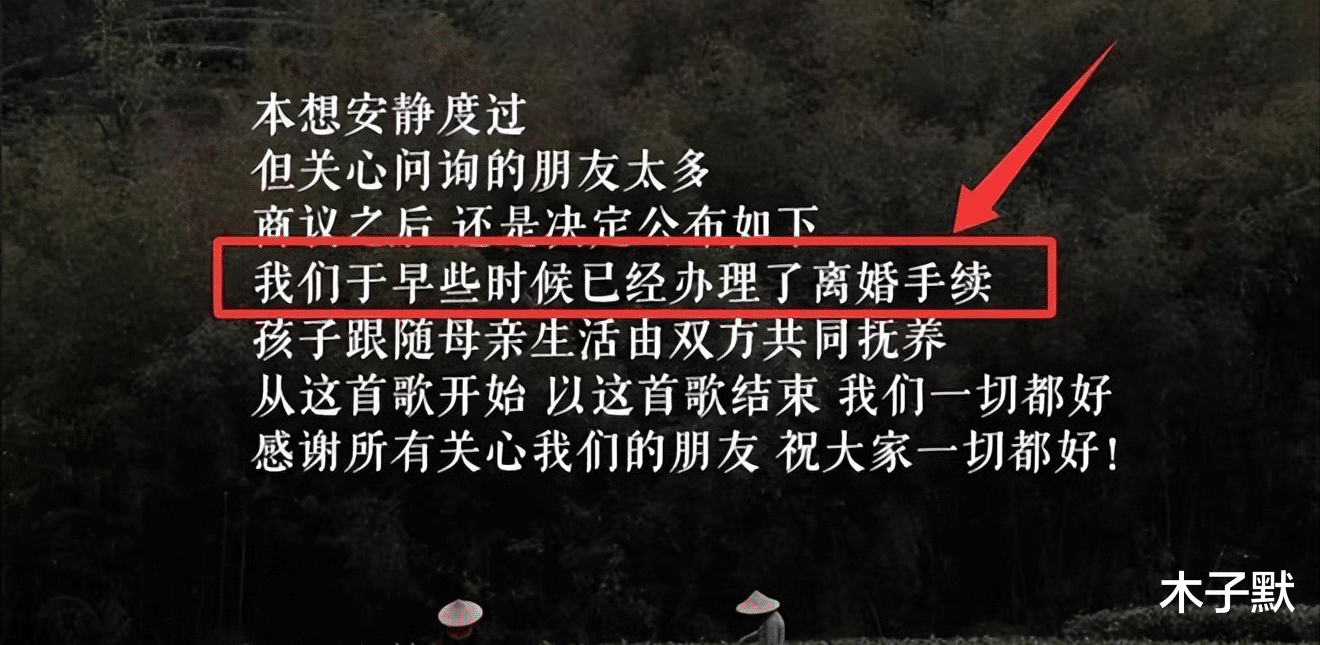 在婚姻中受尽了委屈,但是在离婚文案里并没有相互撕扯和指责,这种“好聚好散”的态度,让人想起多年前李亚鹏与王菲离婚时的坦然。