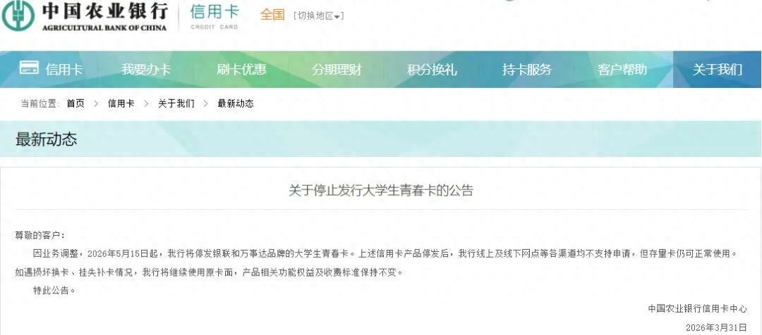 近期,多家银行接连发布公告,宣布停止发行部分信用卡产品,涉及国有大行、股份制银行及地方银行,停发产品以联名信用卡为主,同时涵盖部分主题信用卡。