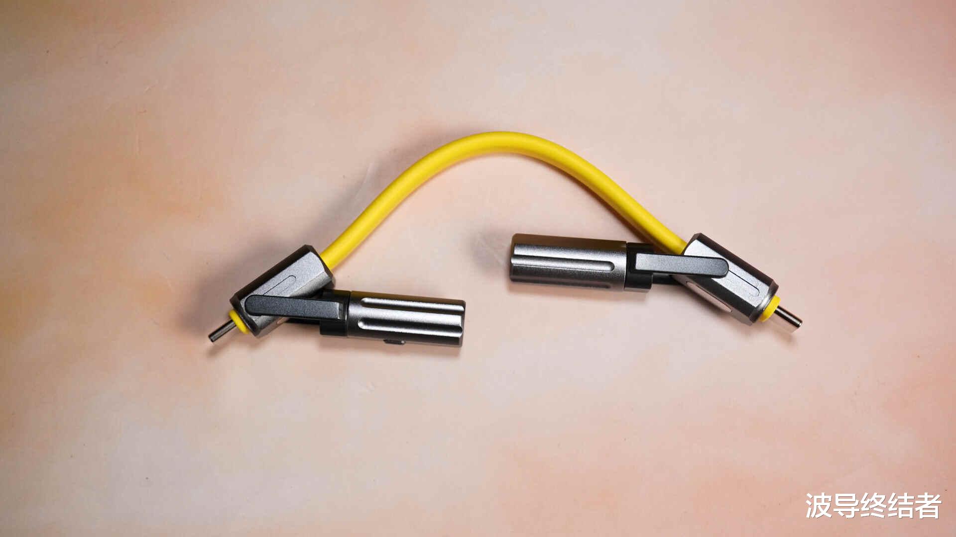 而如果把两头的Type-C都撸出来,它就是一条双头Type-C数据线。内置E-Marker芯片,不仅支持高达240W的PD3.1快充,还能传输数据。两头的外壳可以任意向下或者向下往后翻折约135度,不用担心卡住手机壳。