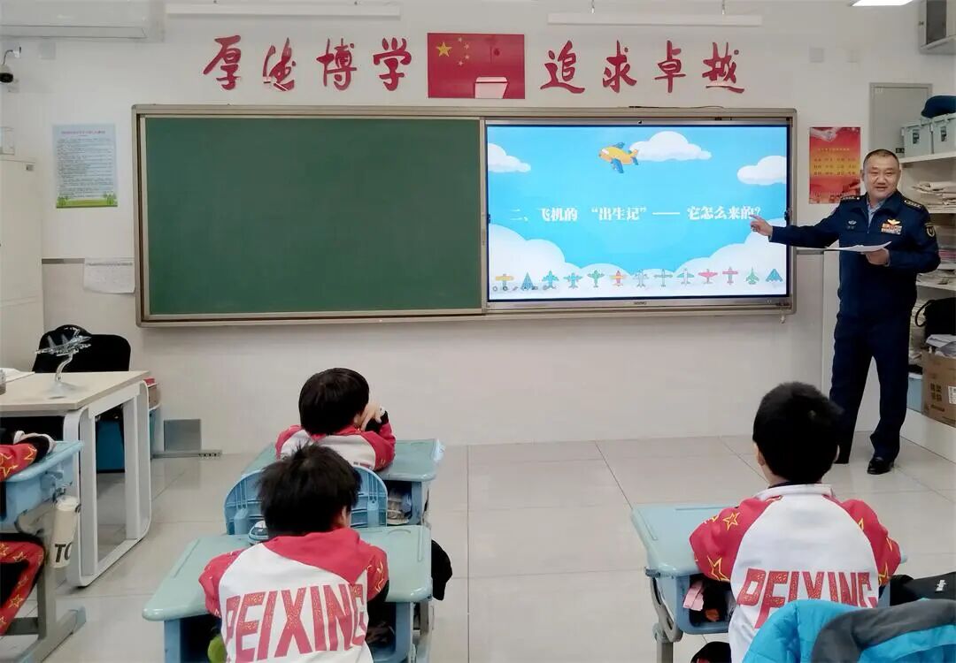 12月5日,北京市海淀区培星小学二年级1班的课堂迎来了一位特殊的“老师”——本学期家长进课堂活动,荣幸邀请到了郭沁萱、郭沁珂同学的爸爸,为孩子们带来了一场精彩纷呈的“飞机小课堂”。带着对蓝天的向往与好奇,孩子们开启了一段奇妙的航空探索之旅。
