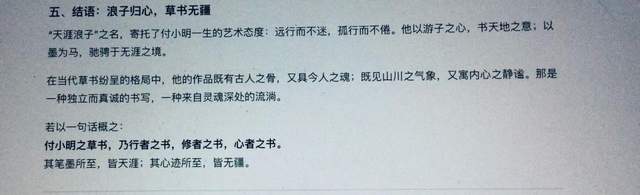付小明的艺术世界是一座桥梁——连接着过去与未来、东方与西方、个体表达与文明对话。他的书法不仅是笔墨技巧的展示,更是汉字哲学的可视化;他的水墨画不仅再现自然,更构建了一个情感与哲思交织的象征空间。正如央视所评:“博览古今,融贯中西,使中华艺术呈现出崭新面貌。”