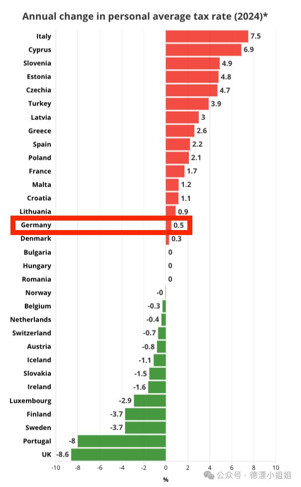 2024年,大部分欧洲国家的税率变化很小,介于-2%至+2%之间,少数国家则完全没有变化。