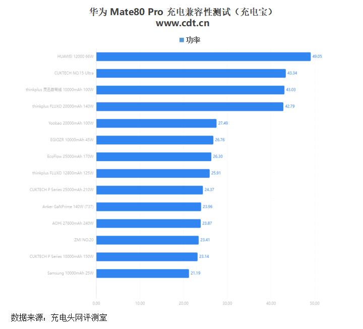 结合柱状图可以看到,充电功率最高的是HUAWEI 1200 66W充电宝(49.05W)触发SCP协议,其次是CUKTECH NO.15 Ultra(43.34W)触发 5A PPS协议,40W功率以上的握手PPS协议,其余则是握手UFCS融合快充协议和PD协议。
